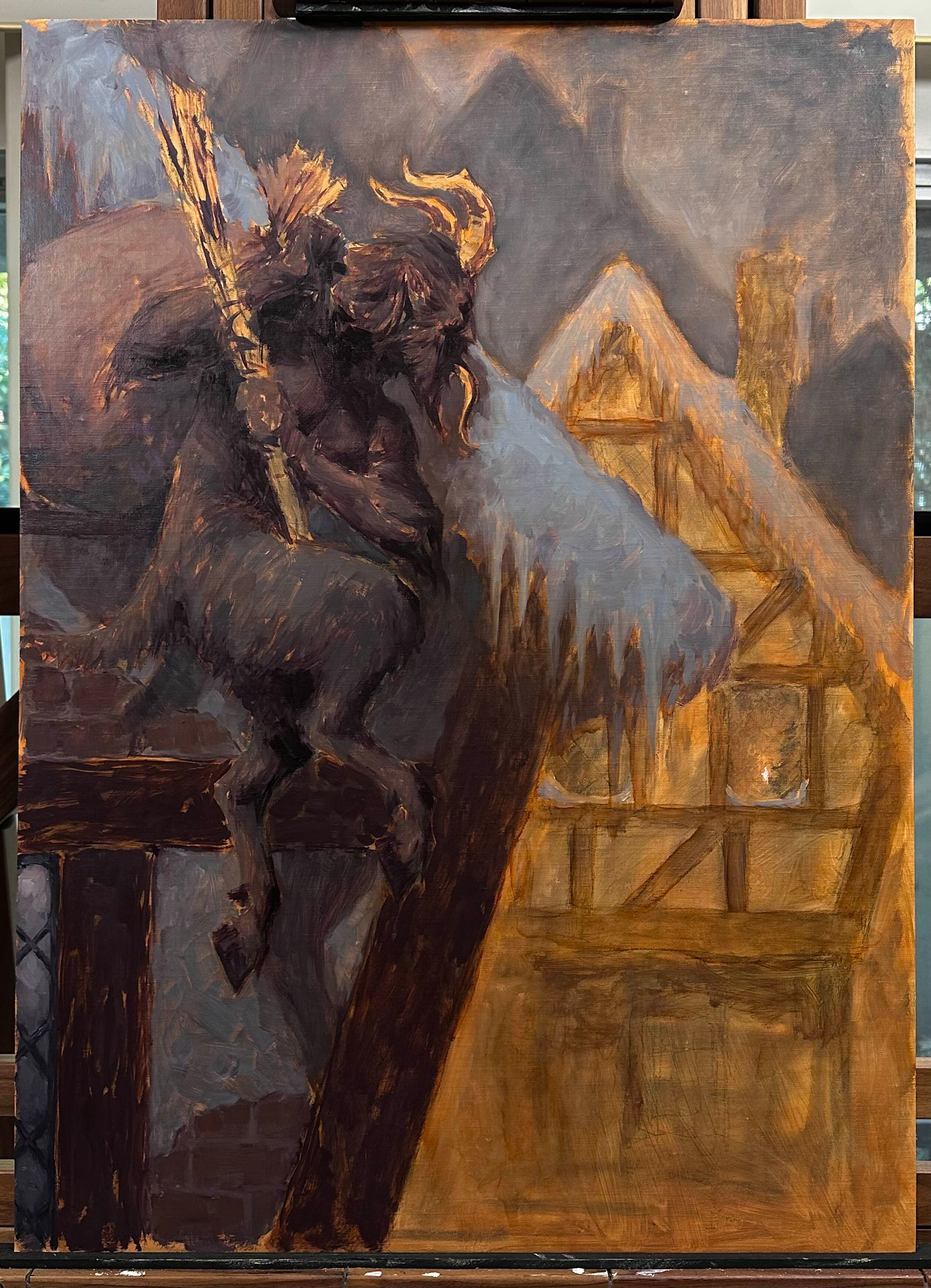 A Krampus painting I did for last year's inaugural annual Krampus Show at Copro Gallery in Santa Monica, CA. 22"x30" oil on linen.